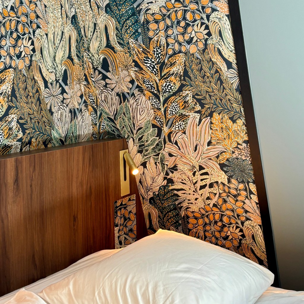 L’espace nuit a été pensé comme un élément structurant du projet, enveloppé par un papier peint au motif affirmé qui vient souligner et mettre le lit en valeur.
