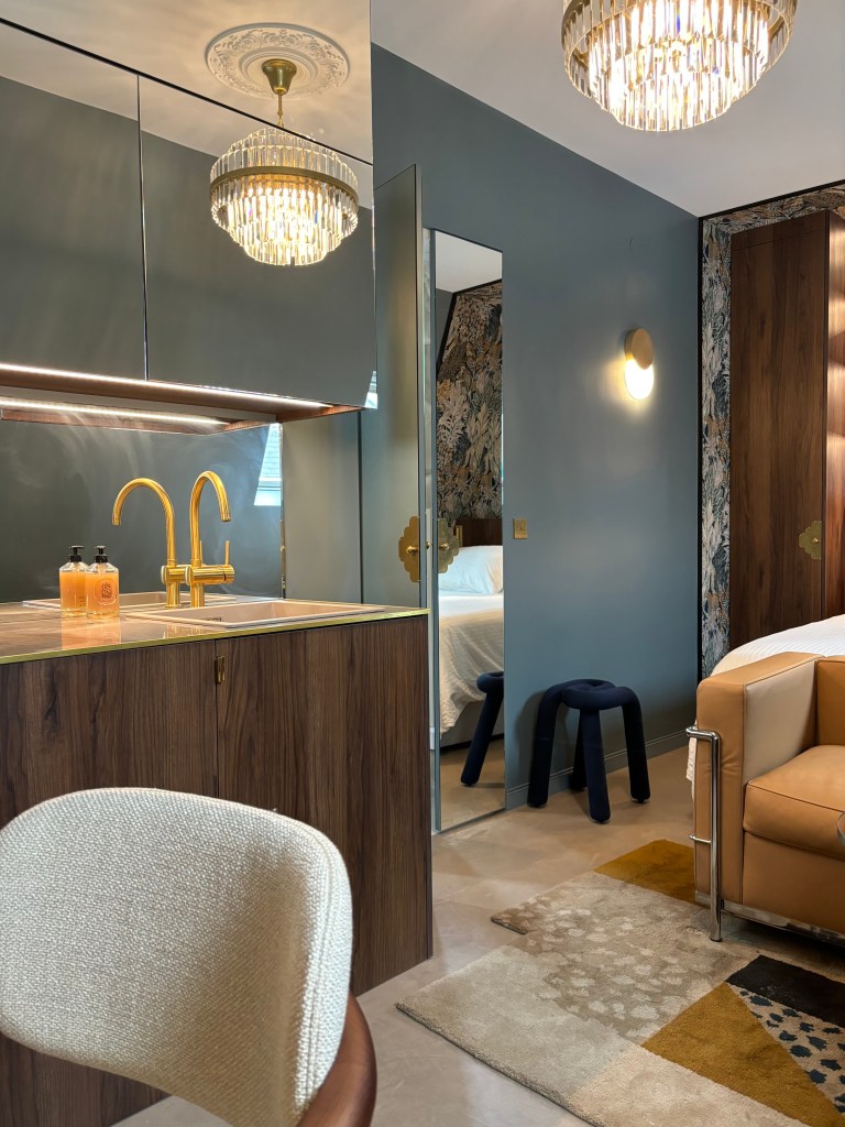 Les clients, installés en province et régulièrement de passage à Paris pour des rendez-vous professionnels, souhaitaient disposer d’un lieu personnel, pensé comme une chambre d’hôtel de caractère.