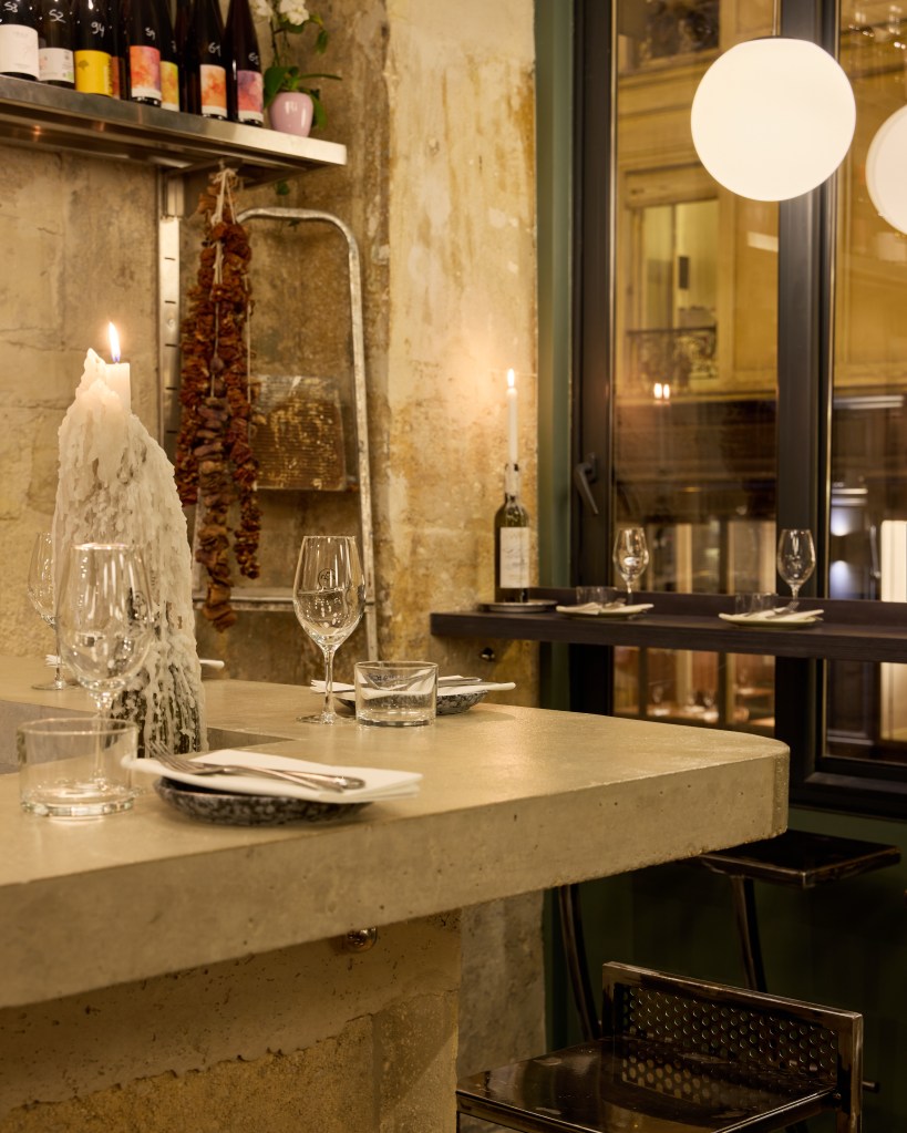 Les clients souhaitaient opérer une rupture nette avec l’existant et créer un bar-restaurant convivial, ancré dans des matériaux bruts, propice au partage et à la découverte d’une cuisine levantine.