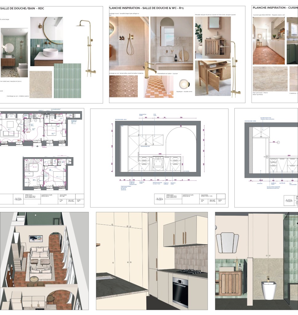 Plans d’aménagement en 2D, maquettes volumétriques en 3D et moodboards pour se projeter clairement dans l’espace et définir les intentions.